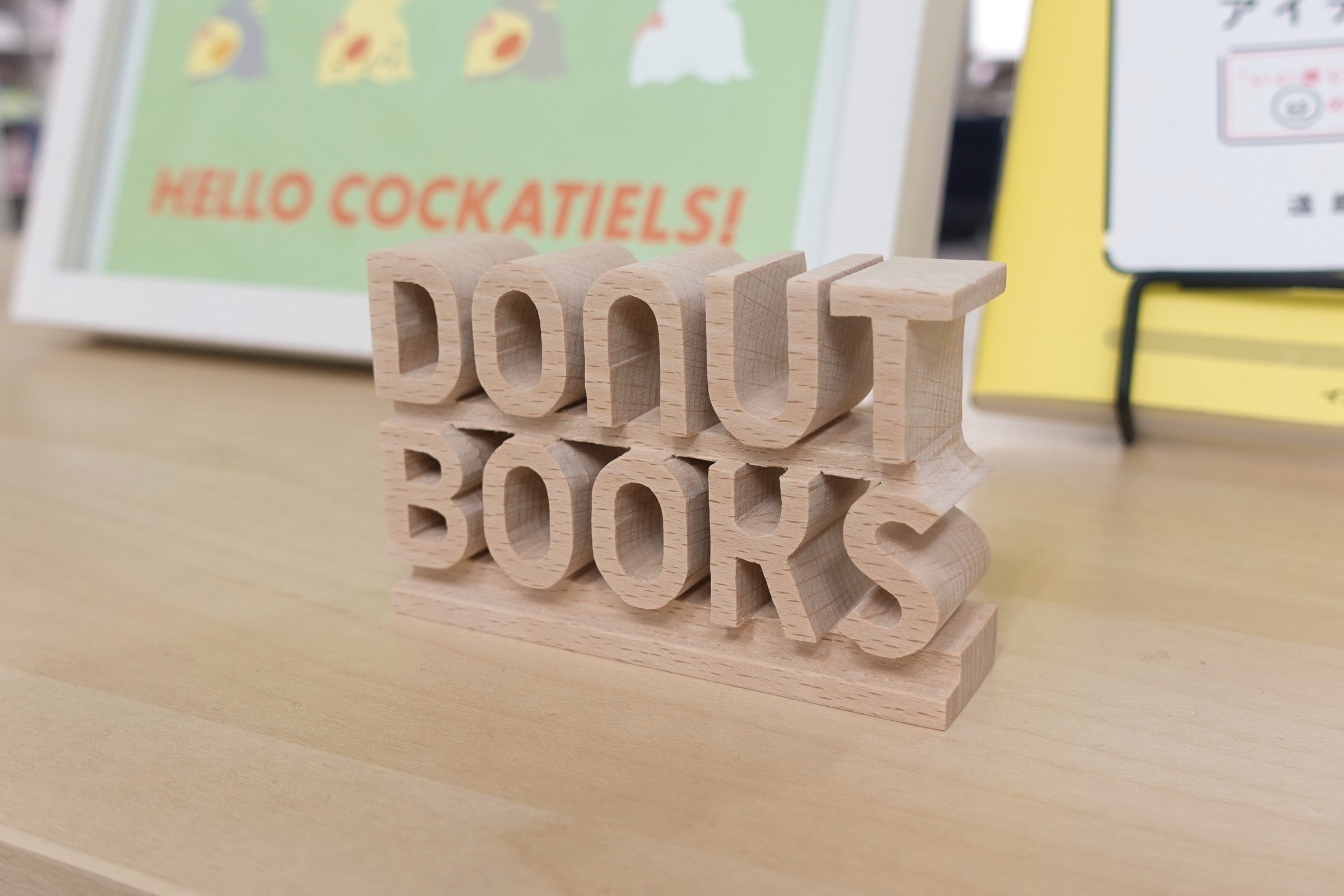DONUT BOOKSのロゴを木製のカウンターサインにしてみました。